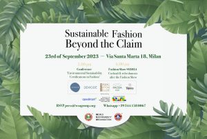 A Agência Brasileira de Promoção de Exportações e Investimentos (ApexBrasil) patrocinou as marcas brasileiras que participaram do desfile de Moda Sustentável “Beyond the Claim”, ocorrido em Milão no último dia 23 de setembro. O evento da World Sustainability Organization (WSO), responsável pela certificação Friend of the Earth, foi realizado no palacete histórico SIAM 1838 e contou com a participação de compradores, jornalistas e influenciadores da moda.